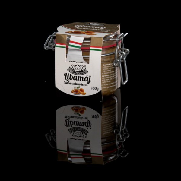 Minőségi hízott libamáj narancslekvárral, csatos üvegbe zárva.